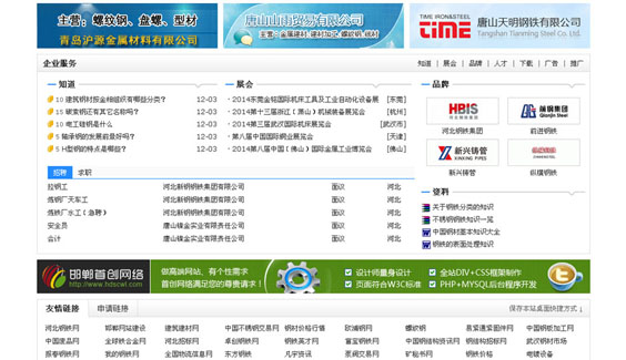 負(fù)責(zé)河北鋼鐵網(wǎng)的網(wǎng)站改版全體業(yè)務(wù),服務(wù)內(nèi)容包括:網(wǎng)頁設(shè)計(jì)、網(wǎng)頁制作、網(wǎng)站程序開發(fā)等網(wǎng)站建設(shè)服務(wù),河北鋼鐵網(wǎng)是河北最大的鋼材信息門戶網(wǎng)站,故網(wǎng)站設(shè)計(jì)以藍(lán)色為主打色系,襯托科技、節(jié)能、先進(jìn)、向上的行業(yè)意識,網(wǎng)站整體設(shè)計(jì)高端、大氣、功能全面的綜合性網(wǎng)站。
